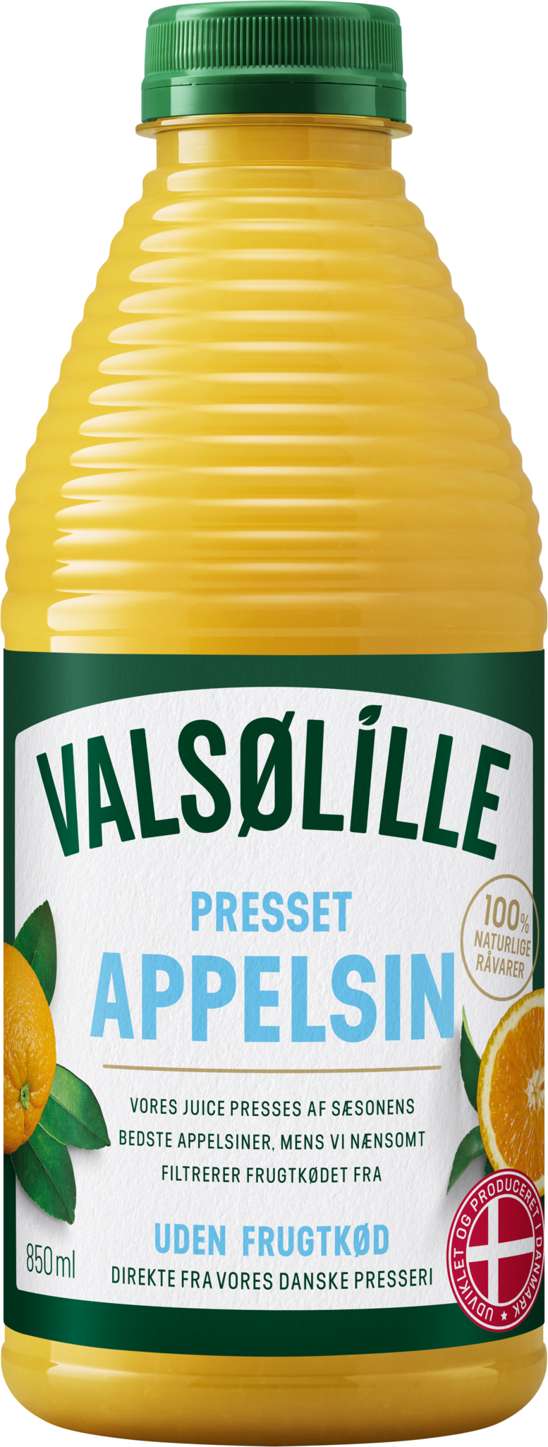 Valsølille Appelsinjuice uden frugtkød presses af sæsonens bedste appelsiner mens vi nænsomt filtrerer frugtkødet fra. Appelsinerne kommer ikke altid fra det samme sted, men fra lige præcis dér i verden, hvor de smager bedst lige nu! Presseriet kalder de små variationer for naturens eget kvalitetsstempel. Stil appelsinjuicen fra Valsølille på morgenbordet og start dagen med et lækkert glas juice fyldt med smag.
